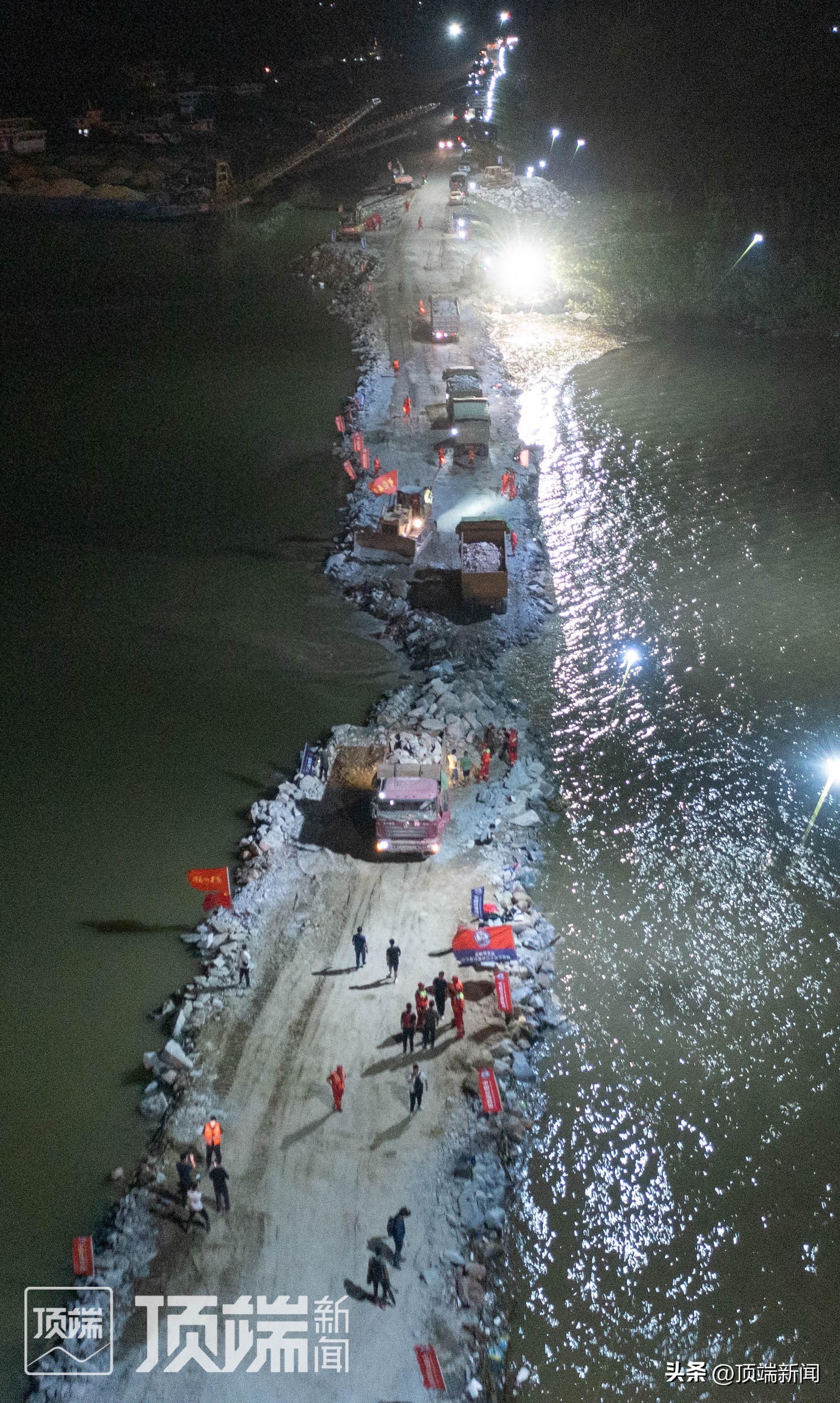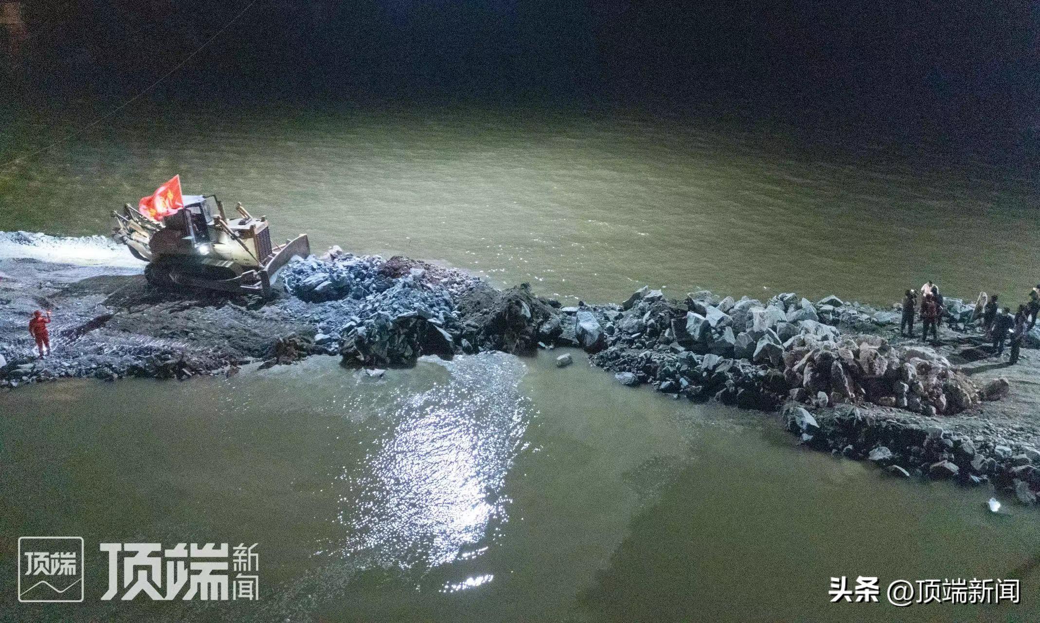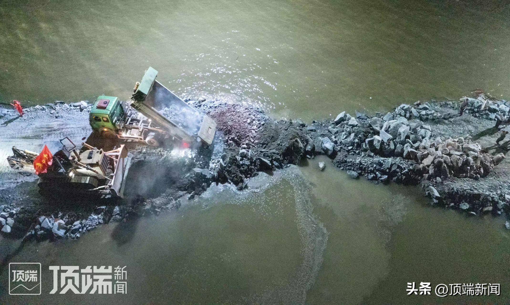 一线的工作人员介绍,决口的成功封堵,是此次抢险救援的一个关键节点。决堤口虽实现初步合龙,但还没有真正实现通车,目前仍在紧张进行施工作业。