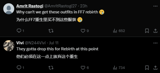 玩家对于这一更新表达了不同意见,有些人觉得这款新皮肤很棒,而另一些人则对为什么《FF7重生》中没有类似服装表示困惑。