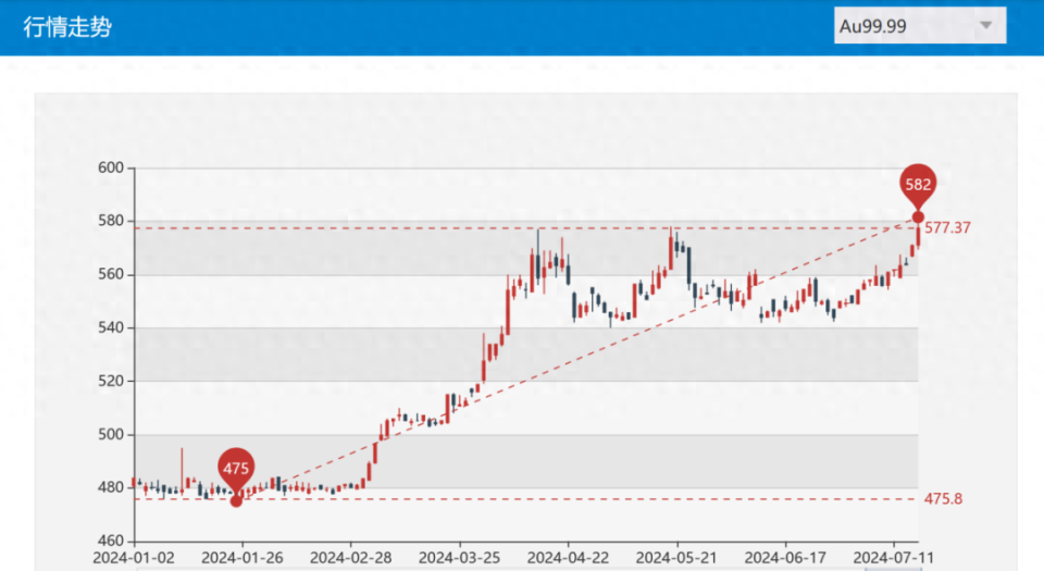 2024年以来Au9999价格变化情况。图/上海黄金交易所