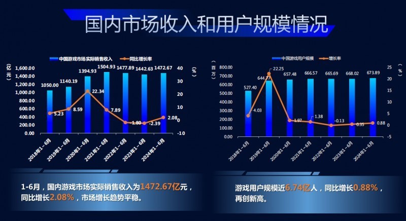 7月25日,中国音数协游戏工委发布《2024年1-6月中国游戏产业报告》,披露了今年上半年国内游戏市场情况。
