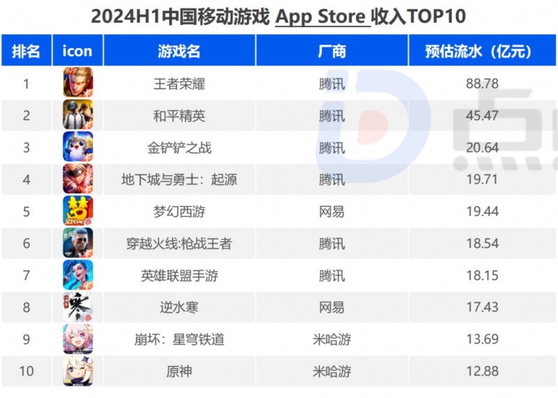 腾讯作为目前国内最多常青游戏入围的厂商,旗下共计9款游戏上榜,在数量上,腾讯一家厂商的占比就超过35%,其中《王者荣耀》《和平精英》是唯二两款上半年iOS预估收入超过4亿美元的游戏。