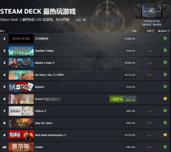 8月2日,Steam Deck官方账号公开了7月份前20款最受欢迎的游戏榜单。在这个排行榜中,《艾尔登法环》连续两个月位居榜首,表现出色。除此之外,前五名还包括《星露谷物语》、《小丑牌》、《博德之门3》和《无人深空》,以下是具体排名情况。