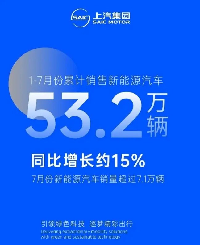 上汽集团新能源汽车销售再创新高,2024年7月销售超过7.1万辆,而2024年前七个月的累计销售量达到53.2万辆,同比增长约15%。同时,上汽集团宣布了一系列重要人事变动。原董事长陈虹因达到退休年龄已辞去所有职务,并对其在任职期间的杰出贡献表示感谢。