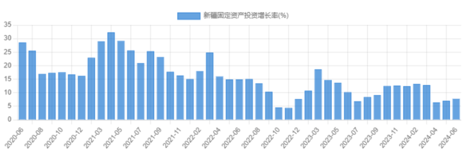 今年上半年新疆固定资产投资总额(不含农户)同比增长7.7%,增速高于全国3.8个百分点;其中工业投资同比增长23.9%。