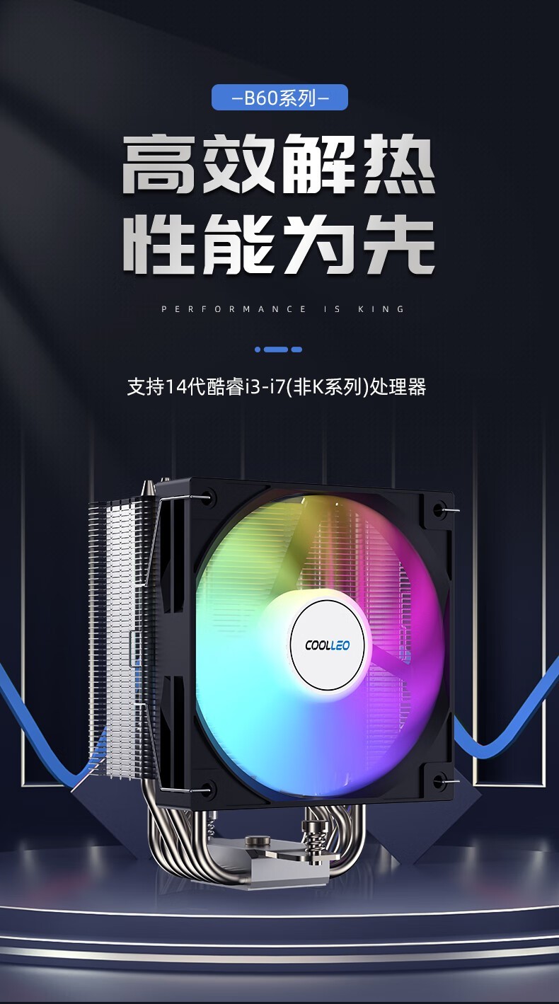 酷里奥B60风冷散热器的解热能力达到了245W,适合高性能处理器的散热需求。