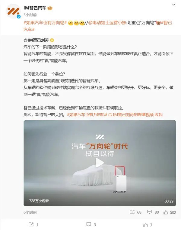 智己汽车最近发布了一则引人注目的预告,宣布将在本月推出一款全新的“万向轮”车型。预告片巧妙地以一个装有万向轮的行李箱作为隐喻,提出了“如果汽车也能像行李箱一样拥有万向轮”的设想,并展示了一段车底视角视频,揭示了新车将配备先进的四轮转向系统。