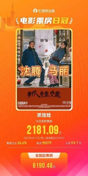 由沈腾和马丽主演的电影《抓娃娃》近日荣登票房榜榜首,已经连续三十天获得这一殊荣。据最新数据显示,该片今日票房达到了2181.09万,总票房已突破30亿元。