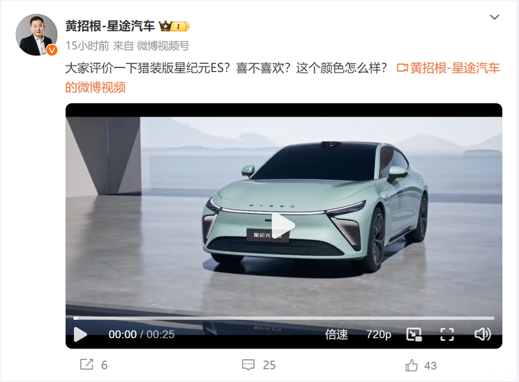 日前,星途汽车营销中心总经理黄招根在社交媒体上发布了星途星纪元ES“猎装版”车型的视频。新车设计语言与在售车型基本相同,但车尾采用了猎装造型,外观更加动感。据悉,该车将于8月21日上市,共推出5款车型,ES国际版预售价19.99万元起。