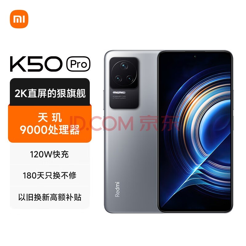 Redmi K50 Pro 天玑9000 AMOLED 2K柔性直屏 OIS光学防抖 120W快充 银迹 12GB+256GB 5G智能手机 小米红米