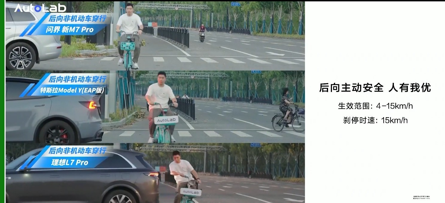 问界新M7 Pro的后向防碰撞在低速倒车时同样表现出色,覆盖4至15km/h的速度范围,并能精准识别儿童、锥桶、防撞桶等障碍物,倒车也安全。?