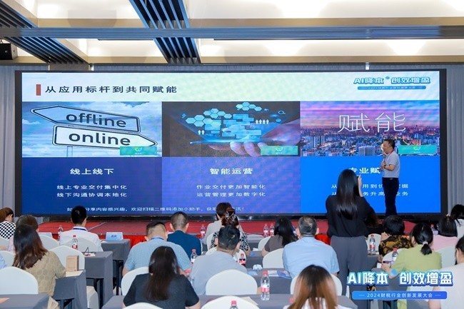8月28日,以“AI 降本· 创效增盈”为主题的金蝶账无忧2024 财税行业创新发展大会在上海白厦Pagoda君亭设计酒店圆满结束!本次活动聚焦AI智能财税、财税微型企业生态、数字转型实践案例分享、行业发展实践等内容进行研讨,以AI助力财税机构数字化转型及小微企业高质量发展。活动现场出席的各界嘉宾、企业代表、各领域专家共计200余人,一起共话财税数智化思想盛宴。