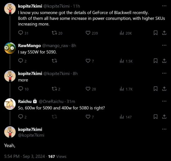 需要注意的是,上述功耗数据是根据市场传闻和推文猜测得出的,并未得到官方确认。不同制造商的硬件设计和设计要求可能会影响所引用的功率数据。