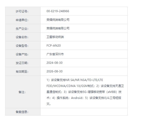 近日,一张关于荣耀卫星移动终端的工信部入网许可证曝光,据入网信息中显示,“该设备支持天通卫星通信制式”、“该设备支持北斗三号短报文。”而此前,荣耀CEO赵明在7月12日发布会上就曾表示荣耀Magic V3 还有双卫星版,可见,首款支持双卫星通信的安卓手机真的来了。