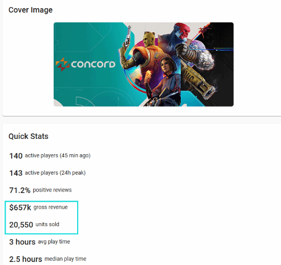 据知名数据分析公司VG Insights提供的数据显示,截至目前,《星鸣特攻》全球销量仅有20550套,总收入仅为65.7万美元(约合人民币465万)。此外,该游戏在Steam平台上的游玩人数也未达到预期。