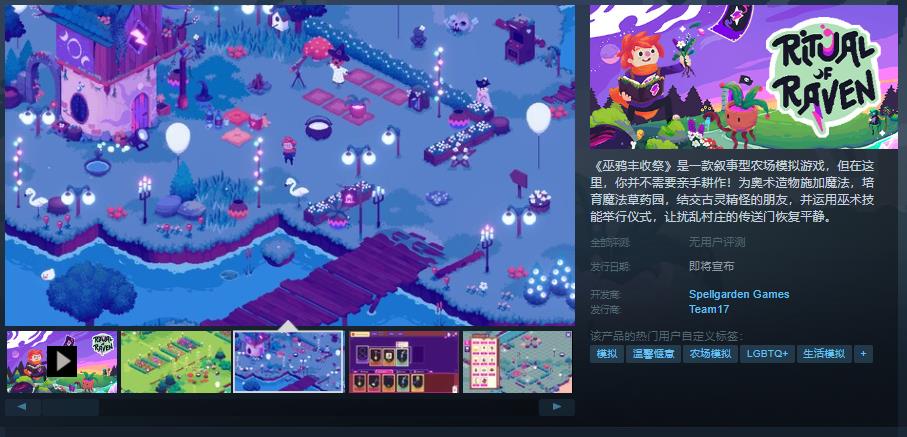 今日(8月16日),叙事型农场模拟游戏《巫鸦丰收祭》的Steam页面上线,该游戏支持简繁体中文,并将于未来发售。对于对该游戏感兴趣的玩家来说,可以提前进行关注。