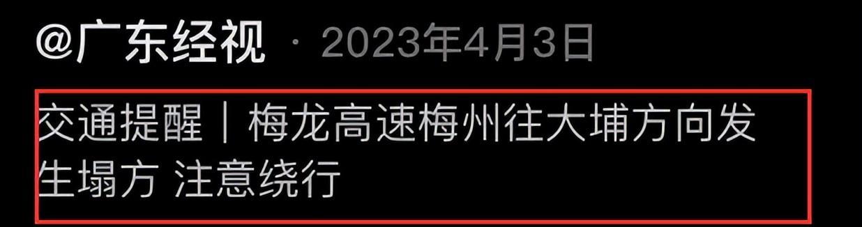 就在2023年4月3日的时候,梅龙高速就曾因为路面塌方而登上热搜。