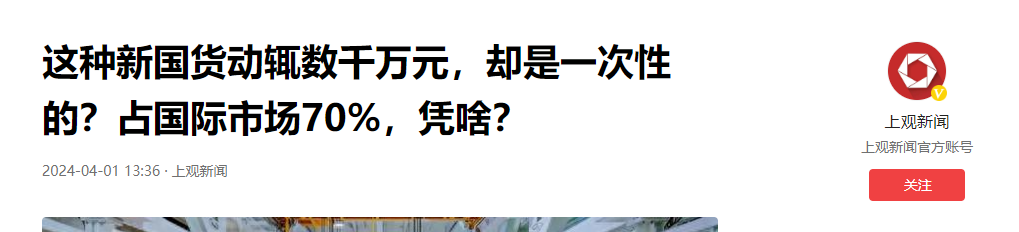 上观新闻:这种新国货动辄数千万元,却是一次性的?占国际市场70%,凭啥?