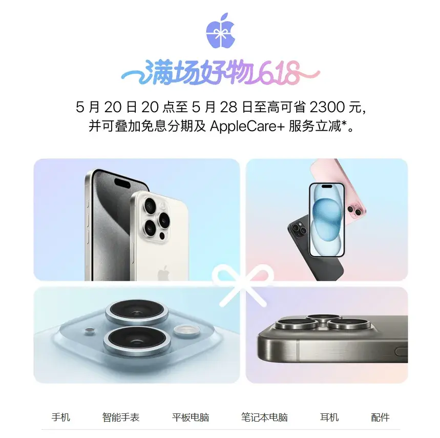 记者从天猫苹果旗舰店获悉,5月20日晚8点至5月28日,iPhone15系列促销销售,叠加苹果惊喜购物券和官方立减金额,降价幅度不小。iPhone15优惠后,售价4599元。其中,iPhone15Pro Max优惠2050元。