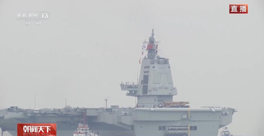 今天上午,我国第三艘航空母舰福建舰出海开展首次航行试验。根据航母建造工程进展,这次海试主要检测验证福建舰动力、电力等系统的可靠性和稳定性。