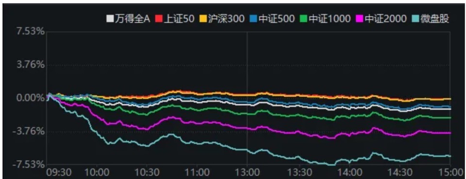 所以不难理解,场内资金要么停手不做,要么就去更稳妥的地方抱团——于是选择了大盘股。这也是为什么上证50、沪深300还能大体稳在0轴。
