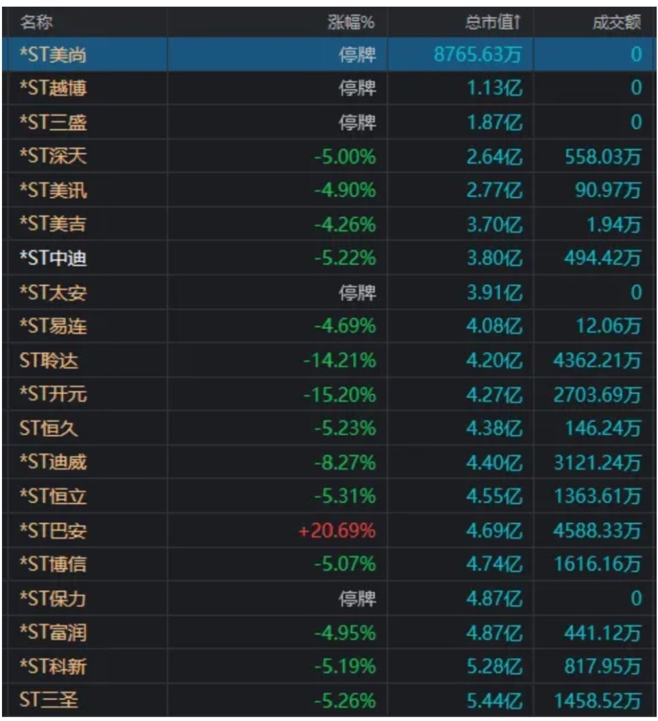 而另一边,市值最小那批股,TOP20中仅一只收涨。