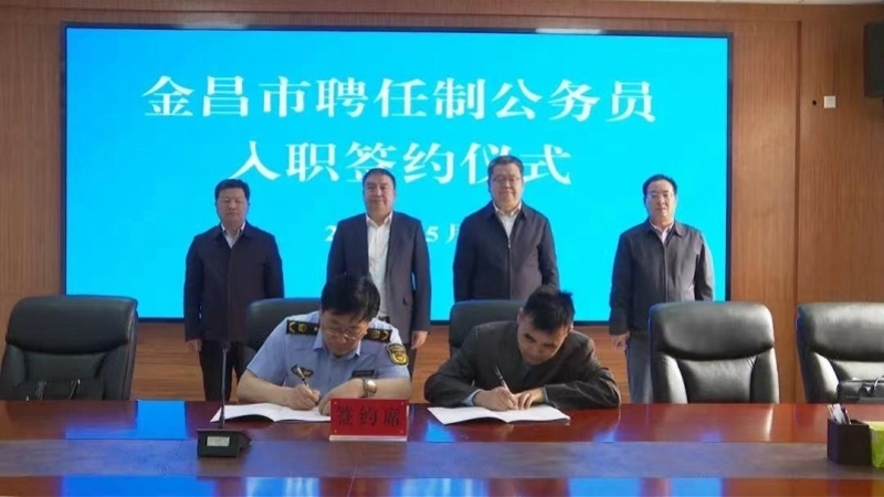 甘肃省首位聘任制公务员入职签约仪式现场。