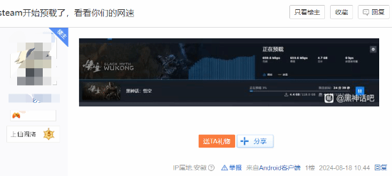 各位玩家是否已经完成了《黑神话:悟空》的预载呢?请在评论区分享您的网络速度吧!