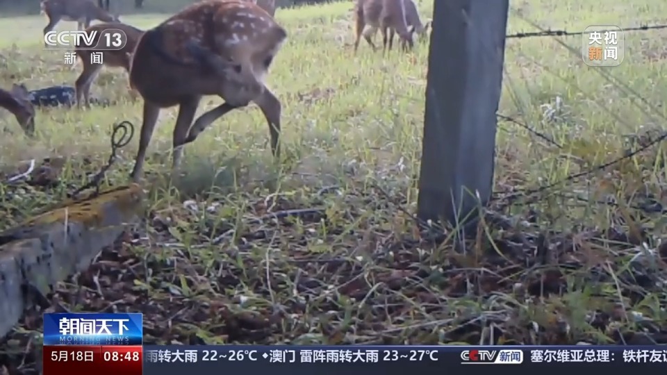 画面中是一只东北虎尝试跨越中俄边境线,从俄罗斯进入我国的影像,由于边境线铁丝网围栏的阻隔,包括东北虎豹在内的大部分野生动物,都难以成功实现跨境迁徙。基于保护东北虎豹等濒危物种的共同目标,经过中俄两国保护部门多年的共同努力,终在边境线打开了一系列野生动物之间的“交流通道”。