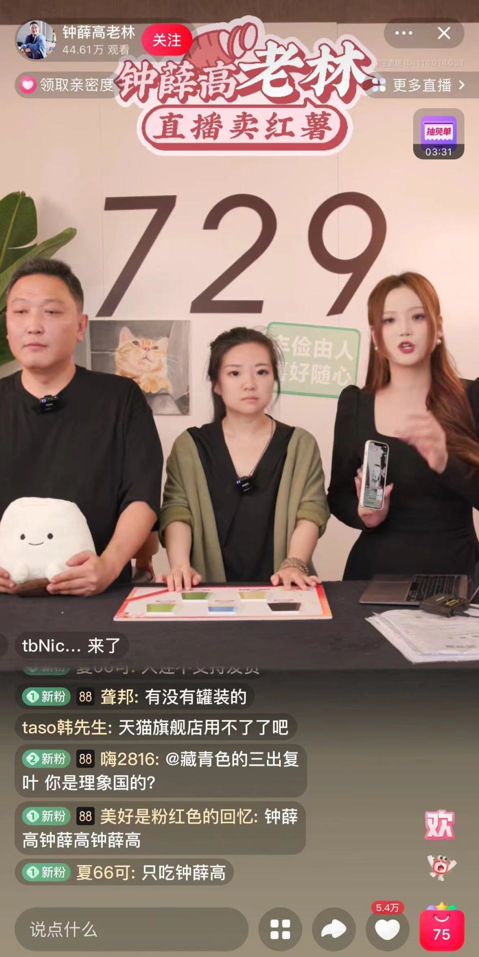 据东方财经,直播中,林盛表示,有很贵的红薯,但怕被骂,所以找了价格适中的红薯。但评论区里也有网友吐槽是“红薯刺客”。直播间里,林盛卖的红薯42.9元5斤。