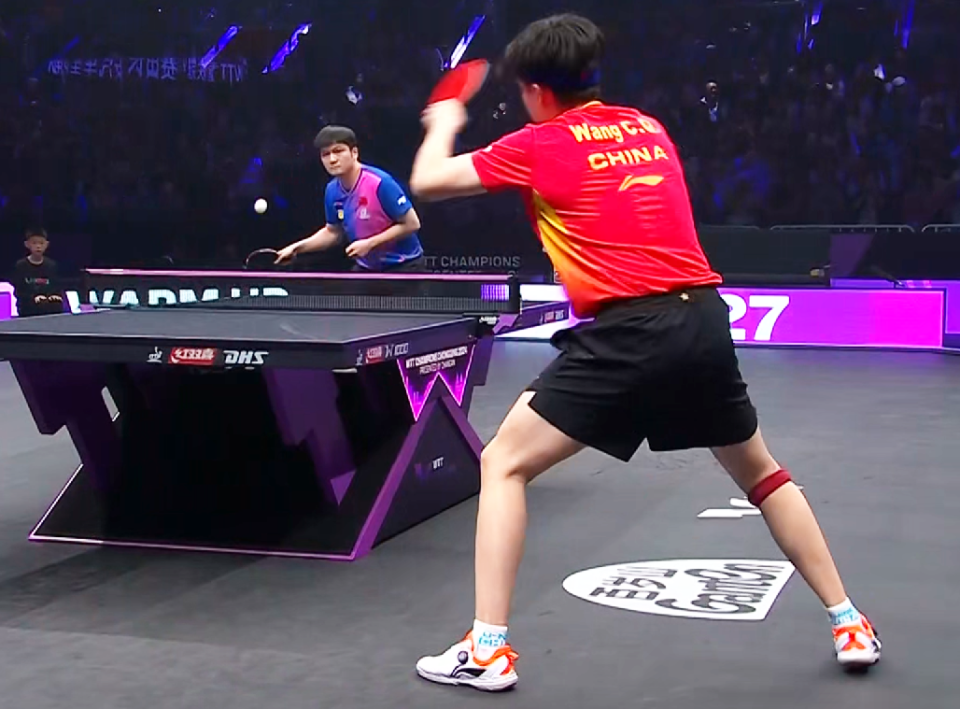 首局开始后,两位选手很快通过反手拧拉组织强势进攻,单板质量非常高,所以并未形成多板相持的回合球,樊振东虽然开局落后,但很快便追平比分,对困难的准备非常充足,所以对王楚钦的进攻预判比较准确,最终以11-9反超拔得头筹。