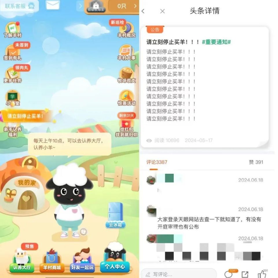 “我买了8年,在2019年、2023年去了两次牧场就是信任了才投了几百万,五月份被一棍子打回了原形。”在众牧宝的群里,有投资人表示,自从5月16日,该平台到期羊标出栏后就无法提现了。