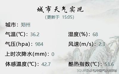 这样离谱的组合,即使在江南和华南地区也极为少见,更不用说是在北方了。对比一下,今天杭州国家站在40度高温的时候,湿度仅为40%,而在11时达到36度时,相对湿度也仅为54%,福州国家站达到36.5度的时候,湿度为45%。按照NOAA的酷热指数公式计算,郑州今天的酷热指数竟然达到了53.6度,这种湿热高温,对于东部地区来说,已经是非常强烈的了。
