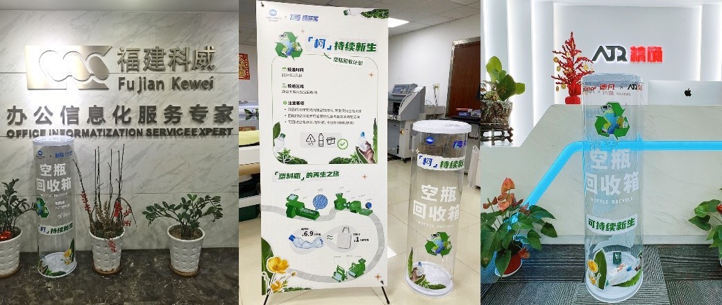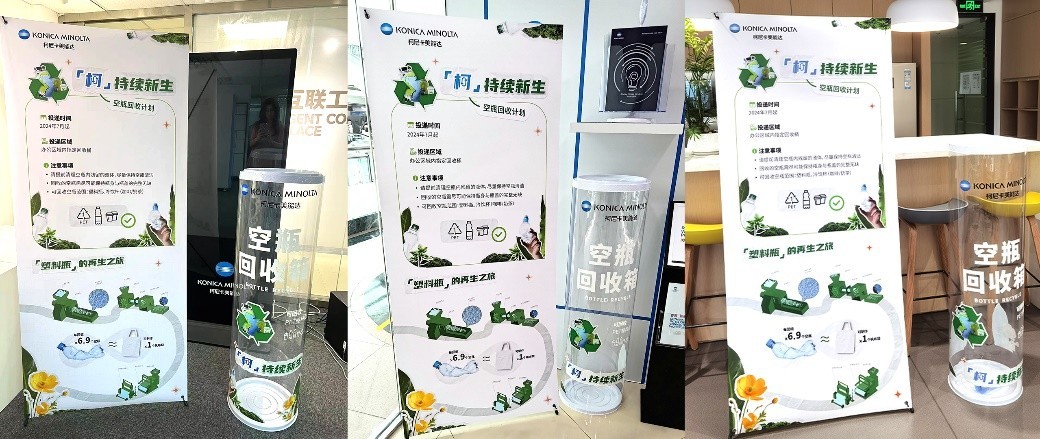 此次的“空瓶回收计划”除了柯尼卡美能达中国上海总部之外,还联动了北京、广州、深圳三地的分公司以及部分经销商合作伙伴共同参与。各地办公室的内部专设了“空瓶回收箱”以便于员工们自由投放使用过的空瓶。